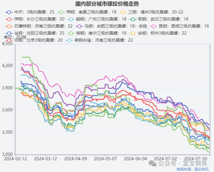 建材:12日线螺市场稳中下行,据富宝统计53个样本城市中,保持平稳的城市14个,占比26%;下跌城市39个,占比74%,跌幅10-70;无上涨城市;今期螺盘面持续下行,期螺10收3222,跌64,跌幅1.95%;市场面,今市场仍维持跌势,市场成交依旧疲软,部分商家继续让利低价出货,但整体采购意愿有限,宏观面利好驱动不足,加之原料端负反馈仍在发酵,整体价格仍有下行风险,总的来看,预计明日市场维持弱势。